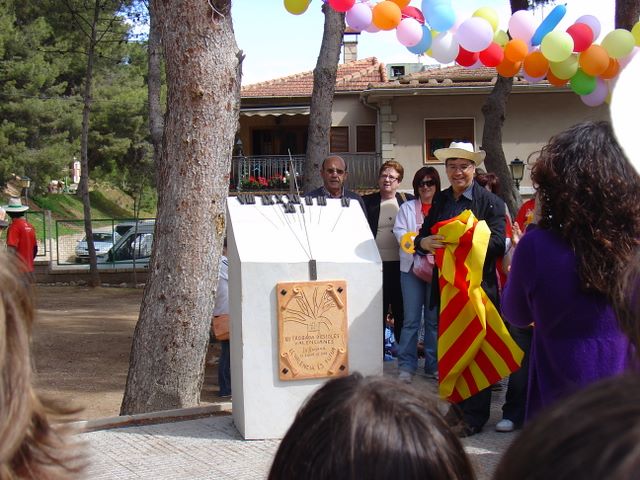 XII Trobada d'Escoles en Valencià de les Valls del Vinalopó -- L'alcalde de la Romana descobrint la placa commemorativa de la XII Trobada