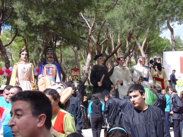XII Trobada d'Escoles en Valencià de les Valls del Vinalopó -- Els gegants de la comarca: d'esquerra a dreta, Monòver, el Pinós, Novelda